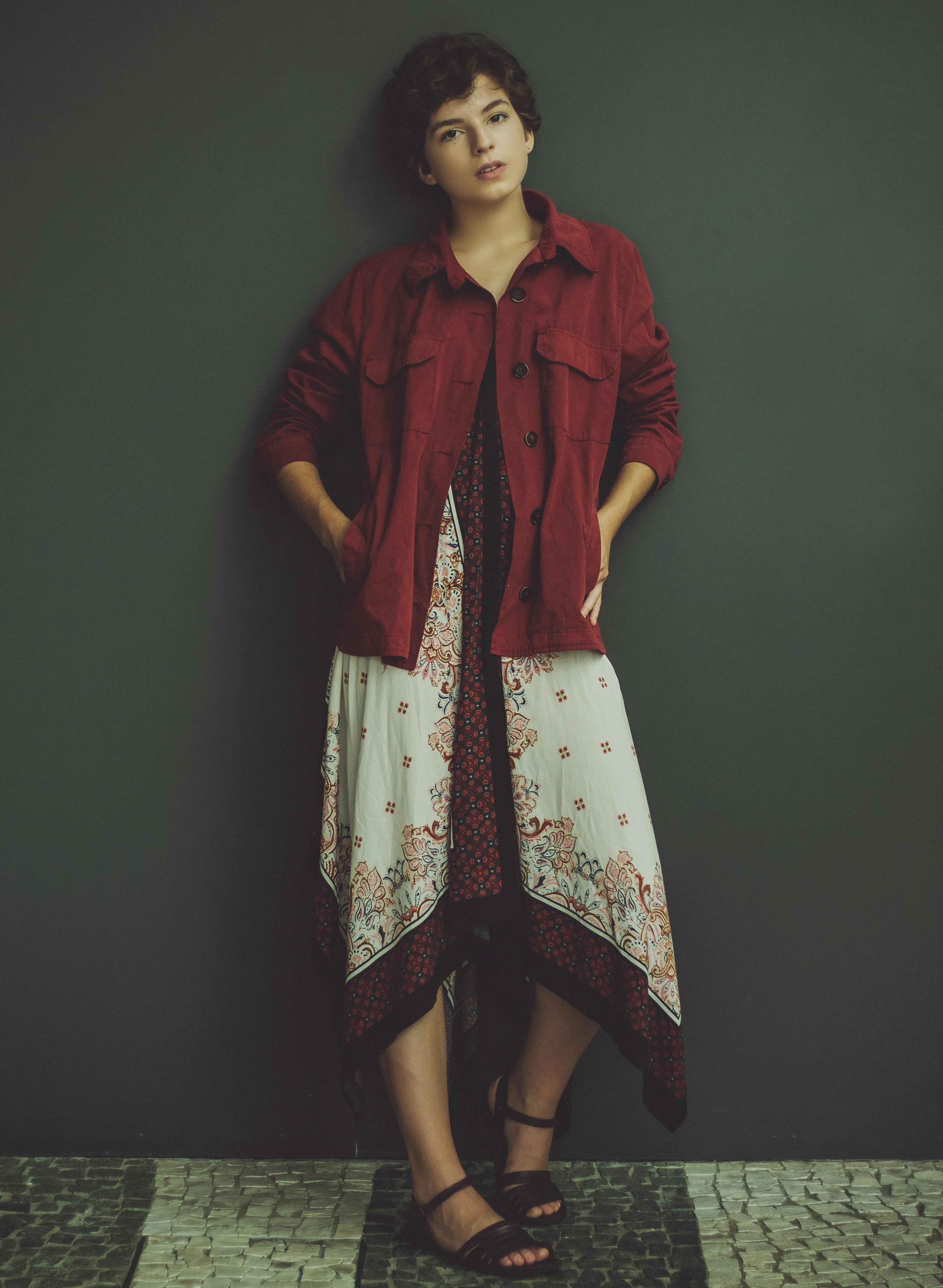Beautiful Women in Red Denim Jacker